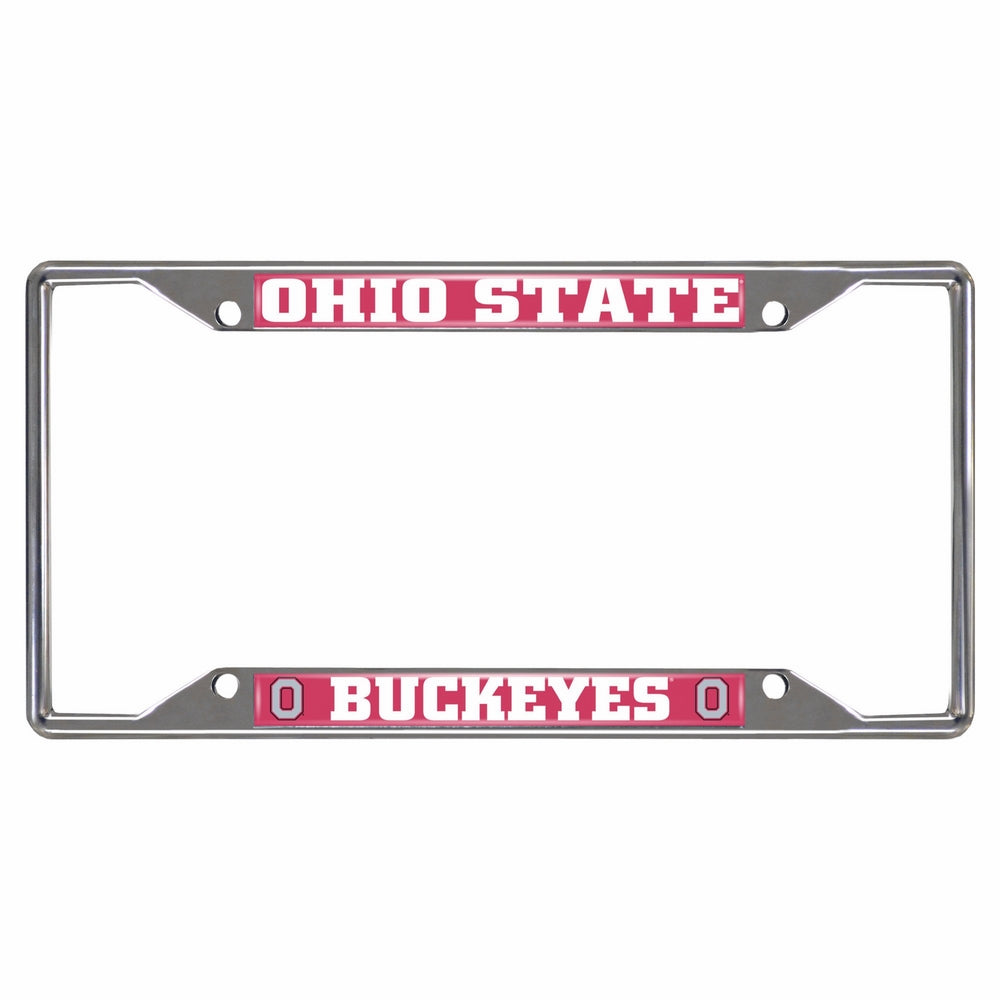 • FANMATS Ohio State University License Plate Frame is the perfect way to accessorize your car or truck and show team pride. Goes perfectly with the mirror and metal style license plates. Crafted from durable, long lasting chrome metal - it resists the elements regardless of the weather. Features an eye-catching display of your team name and logo in true team colors. Fits perfectly around the team inlaid license plate or around your state issued license plate. Each frame measures approximately 12.25 inches long by 6.25 inches tall. Customize your ride and announce your team spirit with pride.