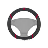 FANMATS NBA Miami Heat Steering Wheel Cover features your favorite team and dresses up your vehicle interior. Crafted with a combination of faux suede and mesh fabric, embroidered with your team logo and team name. Keeps your steering wheel cool in the summer and warm in the winter. Approximately 15 inches in diameter, the steering wheel cover fits most vehicles. Customize your ride and announce your team spirit with pride.