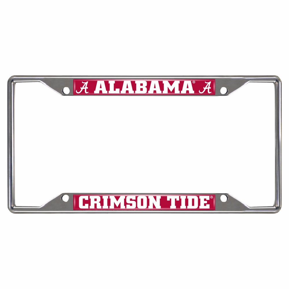 FANMATS University of Alabama License Plate Frame is the perfect way to accessorize your car or truck and show team pride. Goes perfectly with the mirror and metal style license plates. Crafted from durable, long lasting chrome metal - it resists the elements regardless of the weather. Features an eye-catching display of your team name and logo in true team colors. Fits perfectly around the team inlaid license plate or around your state issued license plate. Each frame measures approximately 12.25 inches long by 6.25 inches tall. Customize your ride and announce your team spirit with pride.