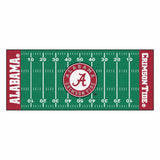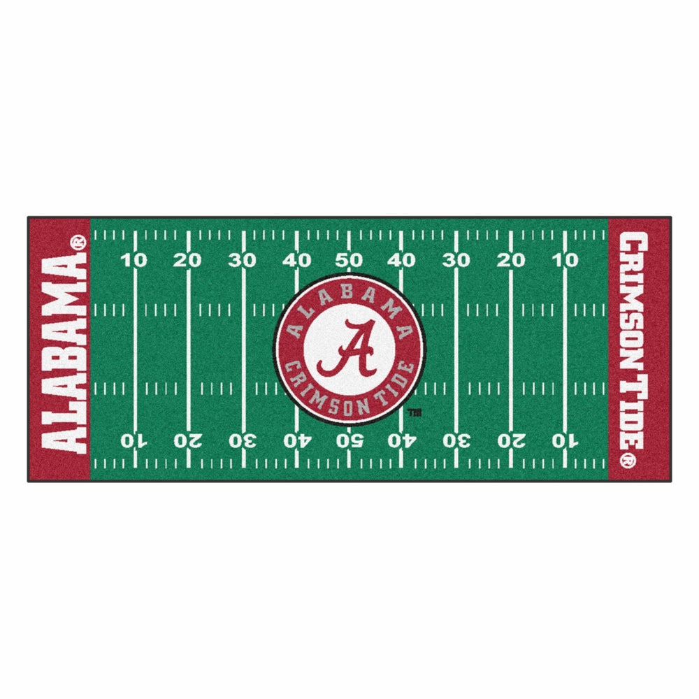Are you a die-hard football fan that likes to show off your team pride then football field runner Rugs by sports licensing solutions were made for you. Yard lines and grass graphics make the runner look like a Real football field. Made in the U.S.A. With 100% nylon carpet and non-skid recycled vinyl backing. Officially licensed and chromo jet printed in true team colors.