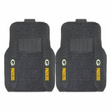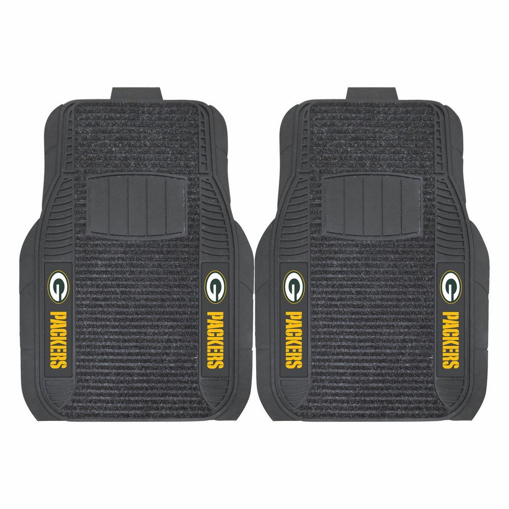 FANMATS NFL Green Bay Packers Deluxe Floor Mats - Set of 2 is rugged, stylish, and keeps your vehicle carpet clean. The set of two front mats measures 20-inches by 27-inches, with an universal-fit design. Trimmable edges allow for customization for an even better fit. The non-skid recycled nibbed backing keeps them in place. The dual-ribbed carpet design catches dirt, while the deep pockets in the design catch and hold dirt and water. Heavy-duty vinyl construction will keep them looking new - season after season. Show your team pride - a great gift for your favorite sports fan.