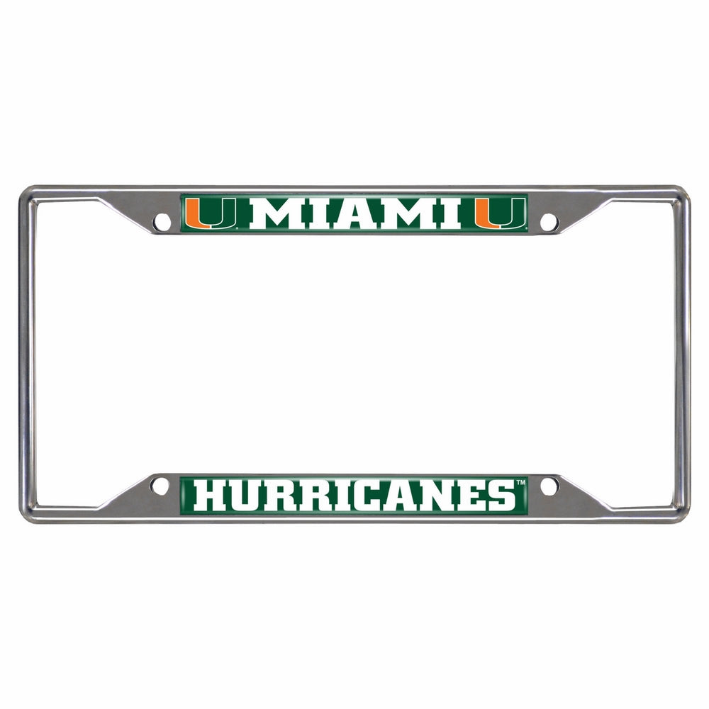 FANMATS University of Miami License Plate Frame is the perfect way to accessorize your car or truck and show team pride. Goes perfectly with the mirror and metal style license plates. Crafted from durable, long lasting chrome metal - it resists the elements regardless of the weather. Features an eye-catching display of your team name and logo in true team colors. Fits perfectly around the team inlaid license plate or around your state issued license plate. Each frame measures approximately 12.25 inches long by 6.25 inches tall. Customize your ride and announce your team spirit with pride.