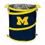 Stands 19" tall and 16.5" in diameterCollapsible, lightweight container perfect for trashcan, laundry hamper, or open beverage containerFeatures carrying handles and zipper lid to keep contents enclosedLeak-proof, heat-sealed liner to hold liquids and iceNCAA Michigan Wolverines Trash Can CoolerBrand: Logo Brands, Model: 171-35, Color: Blue, Size: 19"