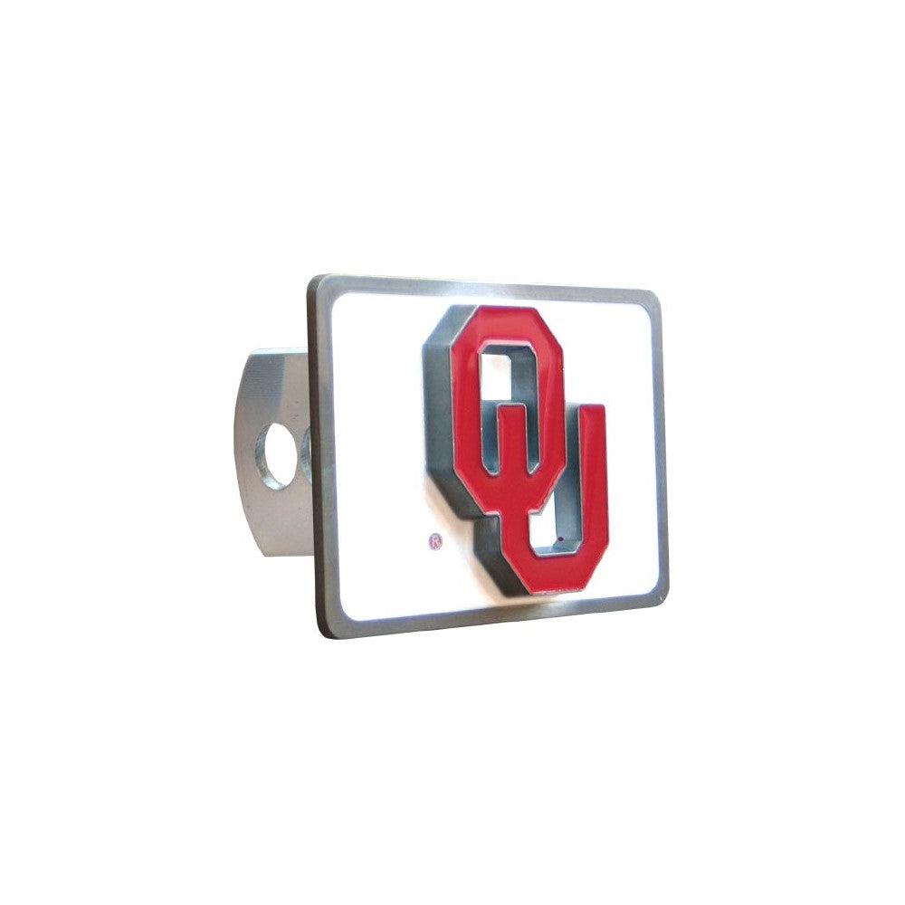 • Go Half Time Oklahoma Sooners College Trailer Hitch Cover is hand painted with 3-D carved logo. Includes hardware and fits class II and class III hitches. This cover is enameled on durable, rust-proof zinc.