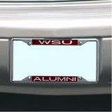 Officially Licensed NCAA ProductChrome Metal License Plate FrameLaser-Cut Mirrored Acrylic InsertsHand Inlaid Mirrored AcrylicMade in USAChrome Metal License Plate Frame with Inlaid Mirrored Acrylic InsertsBrand: Stockdale, Model: 85404, Color: Washington State Cougars