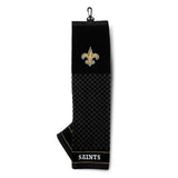 16" x 22" tri-fold embroidered towel100% cottonCheckered scrubber design with bottom embroiderySwivel clip for easy attachment and removal from golf bagEmbroidered logo