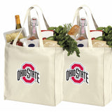 Reusable Ohio State University Shopping Bags or OSU Buckeyes Grocery Bag 2Pc SET NATURAL COTTON