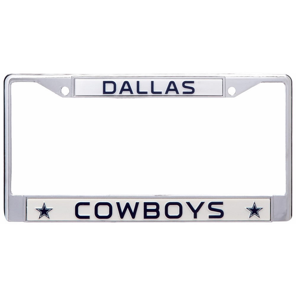 Measures 12" by 6-inchesHigh quality zinc metal frame, resistant to the elementsDecorated with team logo and graphicsOfficially licensedEasy to mount around on any License plateNFL Dallas Cowboys Chrome FrameBrand: Rico Industries, Model: FC1811, Color: Dallas Cowboys, Size: One Size