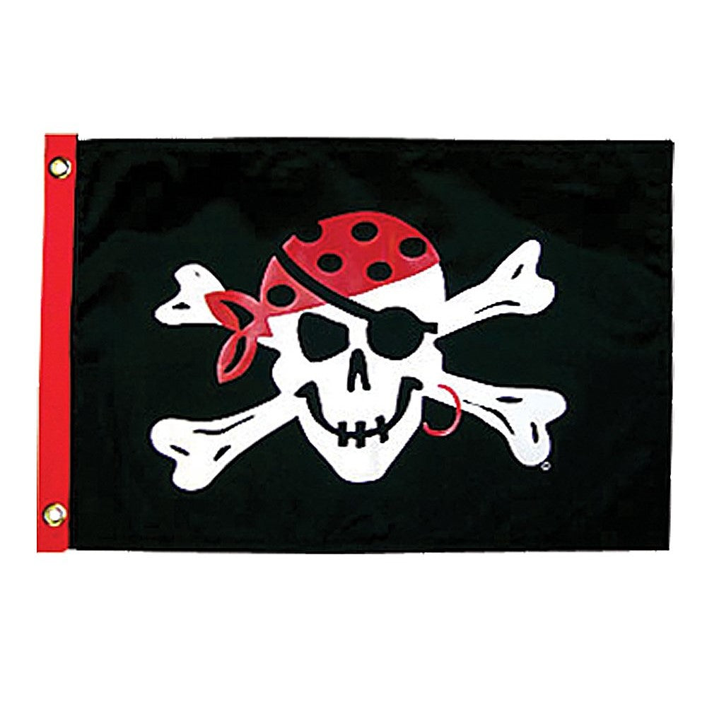 Pirate head FlagsBrass grommets; 200 denier2 sided screen printed nylonMade in the USAPirate head flags measure 12" x 18" with brass grommets. 200 denier; 2 sided screen printed nylon with your favorite graphic.Brand: Taylor Made Products, Model: 1807, Color: Multicolor
