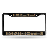CENTRAL FLORIDA BLACK LASER CHROME FRAME Black Laser chrome license plate frame Acrylic team inserts at top and bottom of frame Decorated in team colors Officially licensed