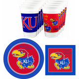 Buy These Officially Licensed Kansas Jayhawks Party Supplies and SAVE $This party pack contains the essentials to entertain 16 of your friends and family with a Kansas Jayhawks themed party.Included are sixteen (16) each of the 16 oz. plastic beverage cups, 9" paper plates and 2-ply paper luncheon napkins.Everything is made in the USA.