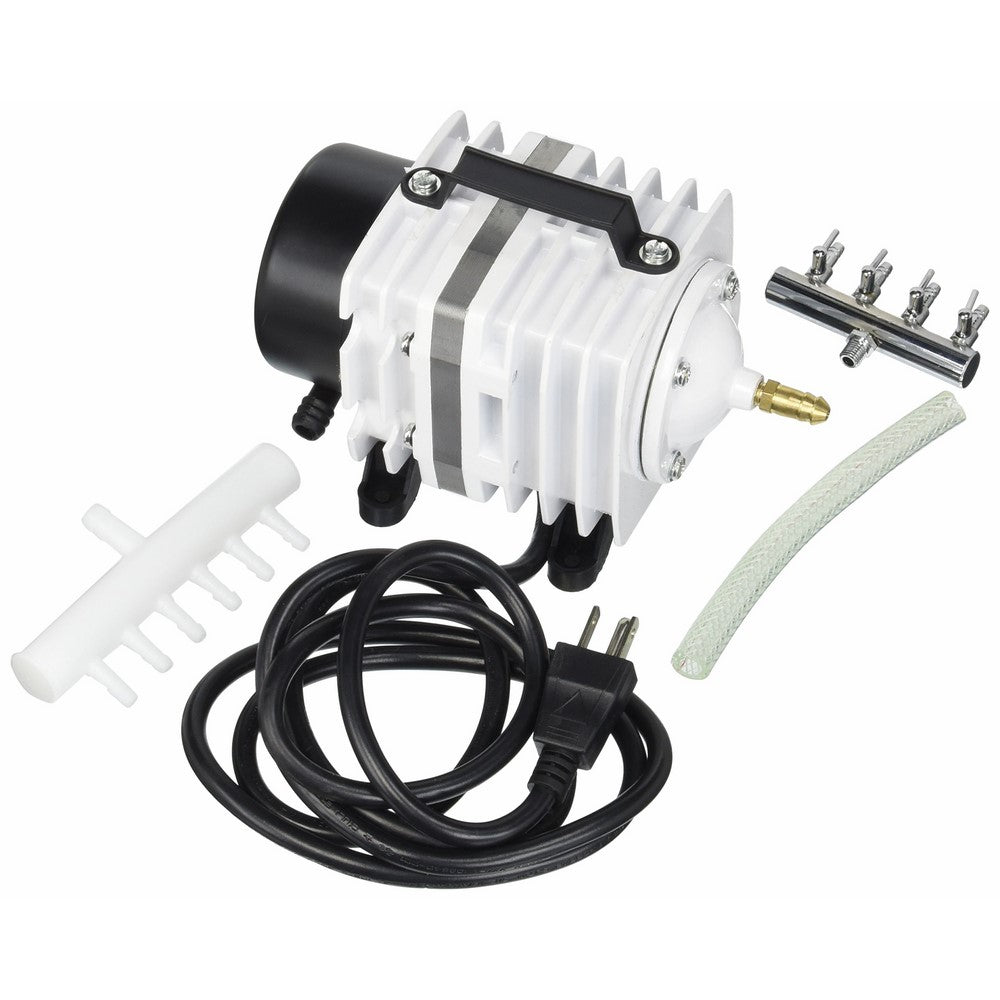 Magnetic piston pumpGreat for multiple aquarium setupsHeavy duty, powder-coated aluminum housingVibration-dampening rubber base for quiet operation; Removable air filterFor any queries, Kindly contact at 888-255-4527The Coralife Super Luft Air Pump produces a high-pressure output perfect for protein skimmers, ozone/oxygen reactors and other high-pressure/high-flow devices. Also suitable for limewood and other...