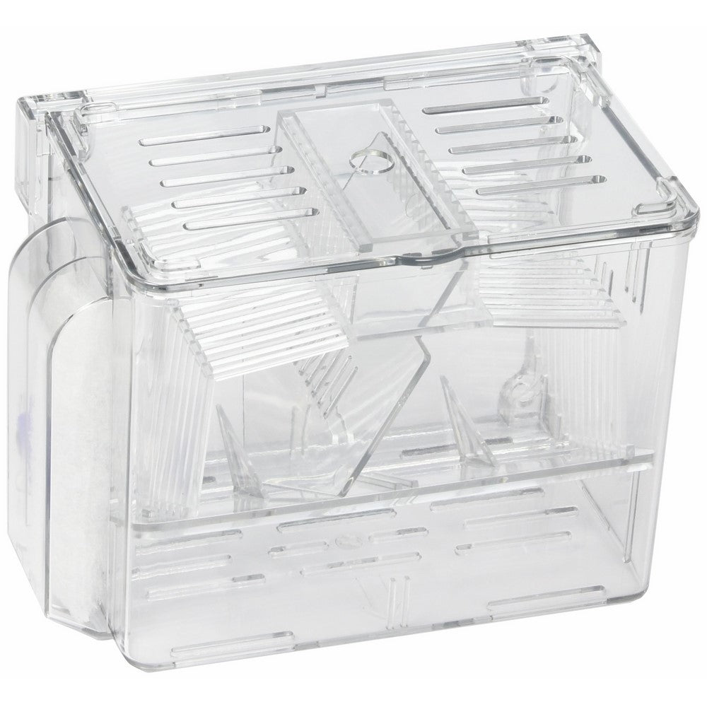 Use as a maturation tank for fry, or isolation tank for aggressive or injured fishSide vents allow for optimal water flow through the air-stone driven filterRemovable center divider allows two pregnant fish to be safely isolatedBuilt-in filter can be easily transferred from one side of the nursery to the otherIf...
