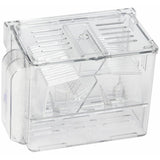 • TOM Aquarium Baby Nursery is ideal for live bearers or to quarantine aggressive fish. This multi-purpose nursery safely separates newborn fry from mother and other fish. As aquarium water is filtered through the air-stone driven filter and circulated throughout the nursery, mother and babies are kept safe and healthy. The built-in filter can be easily transferred from one side of the nursery to the other depending on current needs. Removable divider insert allows two pregnant fish to be safely isolated at same time. Ideal as an isolation tank for aggressive or injured fish.