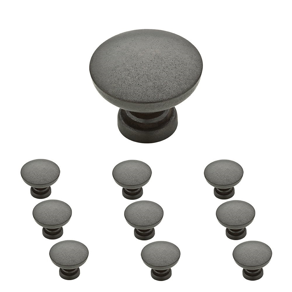 Whether you are adding new appliances to your kitchen, remodeling your cabinets, or installing new faucets and shower heads in your bathroom; its always a good time to add cabinet hardware to coordinate with your home décor.This 1-1/8" Diameter knob is perfect for cabinetry and furniture.10 pack cabinet knobs to help complete that larger projects; includes installation hardware. For easy installation use Alignright Template AN0251C-CL-U (sold separately).The Soft Iron finish is a new take on the classic industrial iron finish.This hardware is crafted from die cast zinc for long lasting quality and durability. Product is backed by a Manufacturer's Limited Life Time Warranty.