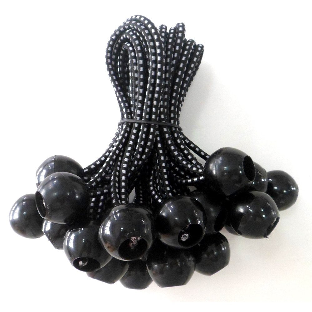 Product Details: Kotap Heavy-Duty Ball Bungees are used to secure tarps to canopy frames or other fixed points. Also prolongs the life of tarps and gromets by allowing slight movement. Reusable.