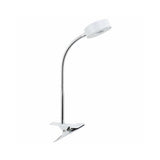 • 5W, glossy White finish, integrated LED clip lamp, chrome gooseneck, 35,000 hours, 3000K, 250 lumens, UL listed, energy star, 5 year warranty.