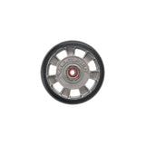 Mold on rubber on die-cast aluminum hub with sealed semi-precision ball bearings. Hard, puncture resistant rubber works well on smooth to semi smooth surfaces. The bonded tire is durable and rolls well over most paved surfaces. 8" Diameter.
