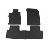 Help protect your Honda's original factory carpet with durable all-weather mats. The mats feature a ribbed channel design that helps contain moisture, dirt and other debris. Retention clips (on the driver's side) and nibbed backing on all mats help hold them in position. Designed to help protect from dirt, mud, snow and slush, the all-weather floor mats feature a multi-dimensional surface, custom channel design and perimeter lip that combine to keep clothing and shoes clean, dry and stain-free. All-weather floor mats are custom-fitted to the vehicle's interior and front mats are embellished with a custom molded vehicle logo. The mats also feature an aggressive "nib" backing and positive retention clips (front driver only) to help prevent sliding. Heavy-duty rubber construction is easy to clean. Color: black. Wet boots, muddy shoes, dog hair; no problem. All Season Floor Mats act as a protective layer between nature and your original carpets.