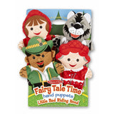 This four-piece hand-puppet set makes it easy for children and caregivers to role-play together! Four simple glove puppets in a coordinated theme can act out a scene together, or be used separately for simple puppet play. Either way, they are great for developing motor skills, hand-eye coordination, communication skills, self-confidence, parent-child bonding, and so much more! Made with brightly patterned, washable fabrics and built to last, these soft and sweet hand puppets are sure to be go-to toys for years to come. Fairy Tale Time Hand Puppets include characters from a classic story--Little Red Riding Hood, a wolf, a woodsman, and Grandmother.