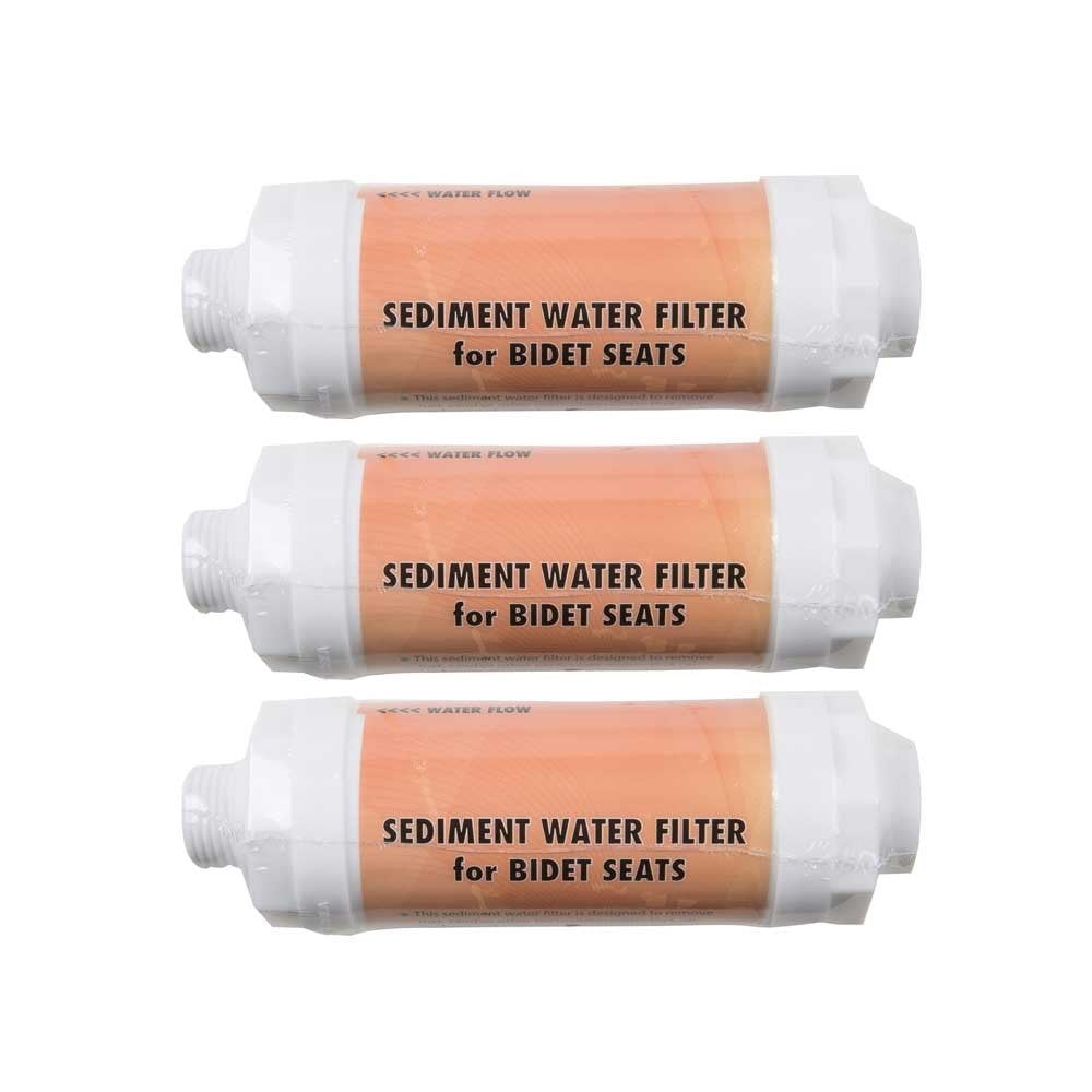 • 3 Pack of sediment water filters for bidet seats. Extend the life of your electronic bidet toilet seat with an inline sediment water filter. Sediment filters remove impurities from the water source. If you have hard water you should use an Ion water filter instead. All filters have 1/2 fittings, one male and one female and fit all bidet seats with 1/2 water supply lines. Install the filter between the "T" connector and water hose leading to bidet seat. Change filters every six months.