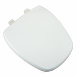 C1B4R49-00 Features: -Specially formulated wood composition ensures strength and durability. -Factory installed hinges ensure perfect alignment between the cover and seat. -Simple to install, corrosion proof, self-aligning hardware. -Clean with warm soapy water. -ISTA 3A Certified. -Molded wood and plastic construction. Product Type: -Hard toilet seats. Finish: -White. Primary Material: -Wood. Dimensions: -Distance: 5.5" (from bolt to bolt). Overall Height - Top to Bottom: -2.5". Overall Width - Side to Side: -14". Overall Depth - Front to Back: -16.5". Overall Product Weight: -8 lbs.