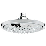 • Eco-minded modernists desiring luxurious showering will delight in the Euphoria Cosmopolitan 180 showerhead. Slim in profile and streamlined in look, it wows, thanks to an all-chrome design and a bevy of high-tech features. These include a 7-1/16-in.-diameter spray face and GROHE DreamSpray features advanced shower engines to deliver precise and consistent water distribution throughout any spray pattern for an unparalleled and custom showering experience technology, which together deliver an immersive shower experience with generous coverage and uniform water distribution. Moreover, the showerhead comes with soothing Rain, a spray pattern that is gentle like summer rain and consists of delicate water droplets. GROHE SpeedClean protects the spray face against limescale buildup, making maintenance a breeze. The Euphoria Cosmopolitan 160 showerhead flows water at a low 2.0 gpm and is available in sparkling GROHE StarLight finish for scratch and tarnish-resistant surfaces for a lifetime of beauty chrome, which will not scratch or tarnish.