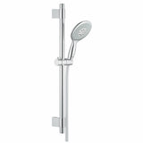 Whether it's deep relaxation or quick refreshment, the PowerandSoul130 shower set does it all with ease and timeless style. A contemporary design with universal appeal, it comprises the sleek and slim PowerandSoul 130 hand shower, which features a 5-in.-diameter spray face and four spray settings: soothing Rain, which is wide and luxurious; GROHE Rain O2, a water-saving pattern of large, air-infused droplets; revitalizing Jet, a focused circular burst of water; and innovating GROHE Bokoma Spray, which mimics the experience of a fingertip massage. The hand shower comes with GROHE DreamSpray features advanced shower engines to deliver precise and consistent water distribution throughout any spray pattern for an unparalleled and custom showering experience technology to ensure uniform coverage. GROHE SpeedClean protects the spray face against limescale prevention. Also included are a shower bar, a swivel shower holder, a 69-in.-long hose and mounting hardware. The PowerandSoul 130 shower set is available in sparkling GROHE StarLight finish for scratch and tarnish-resistant surfaces for a lifetime of beauty chrome.