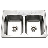 33-by-22-Inch double bowl drop in sink with 4 faucet holesIncludes super silencer pad for noise controlFits 36-Inch cabinet18-Gauge9-Inch deep