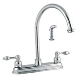 950-32507CP Features: -Kitchen faucet. -Stainless steel surfaces. -Side spray included. -Tubular high rise spout. -Victorian lever handles. -Quarter turn washerless control cartridge. Product Type: -Standard kitchen faucet. Number of Installation Holes: -4. Dimensions: Overall Faucet Width: -16.25". Overall Faucet Height: -14". Maximum Faucet Centers: -8". Minimum Faucet Centers: -8". Overall Product Weight: -4.38 lbs.