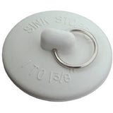 • Master Plumber 714-664 White Rubber Sink Stopper is for 1" to 1-3/8" drains. White rubber construction. Metal ring attached for easy grip. Comes in carded package.