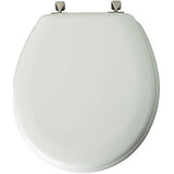 This Mayfair durable molded wood toilet seat features the innovative STA-TITE Seat Fastening System, the seat does not shift around and stays firmly attached to the toilet bowl. The classic non-tarnish brushed nickel hinges are stylish and long-lasting. This seat is proudly made in Sheboygan Falls, Wisconsin, USA and fits all manufacturers' round bowls in the US and Canada.