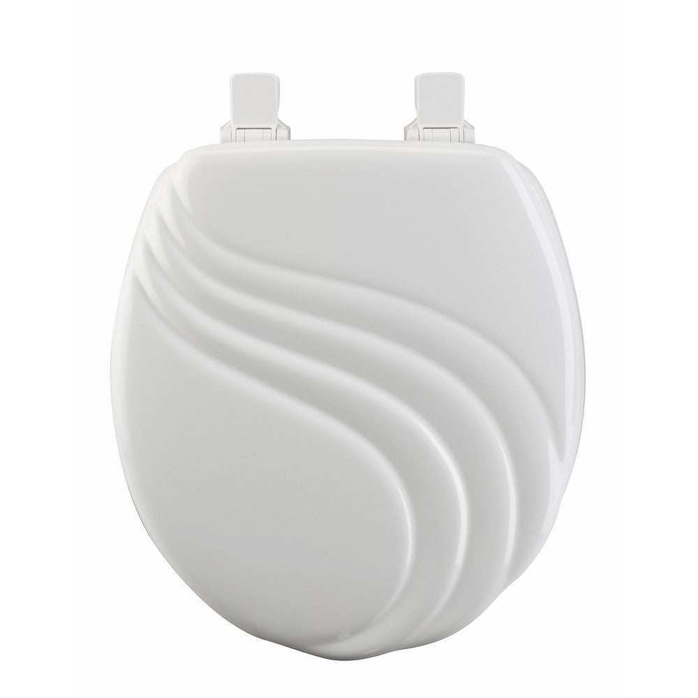 This Mayfair durable molded wood toilet seat with its exculsive sculpted design and smooth high-gloss finish molded wood provides the look of ceramic with durability that resists chips and scratches. It features the Easy Clean & Change hinges to remove seat for easy cleaning and replacement. With the innovative STA-TITE Seat Fastening System, the seat does not shift around and stays firmly attached to the toilet bowl. This seat is proudly made in Sheboygan Falls, Wisconsin, USA and fits all manufacturers' round bowls in the US and Canada.