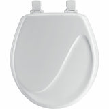 This Mayfair durable molded wood toilet seat with its exculsive sculpted design and smooth high-gloss finish molded wood provides the look of ceramic with durability that resists chips and scratches. It features the Easy Clean & Change hinges to remove seat for easy cleaning and replacement. With the innovative STA-TITE Seat Fastening System, the seat does not shift around and stays firmly attached to the toilet bowl. This seat is proudly made in Sheboygan Falls, Wisconsin, USA and fits all manufacturers' round bowls in the US and Canada.