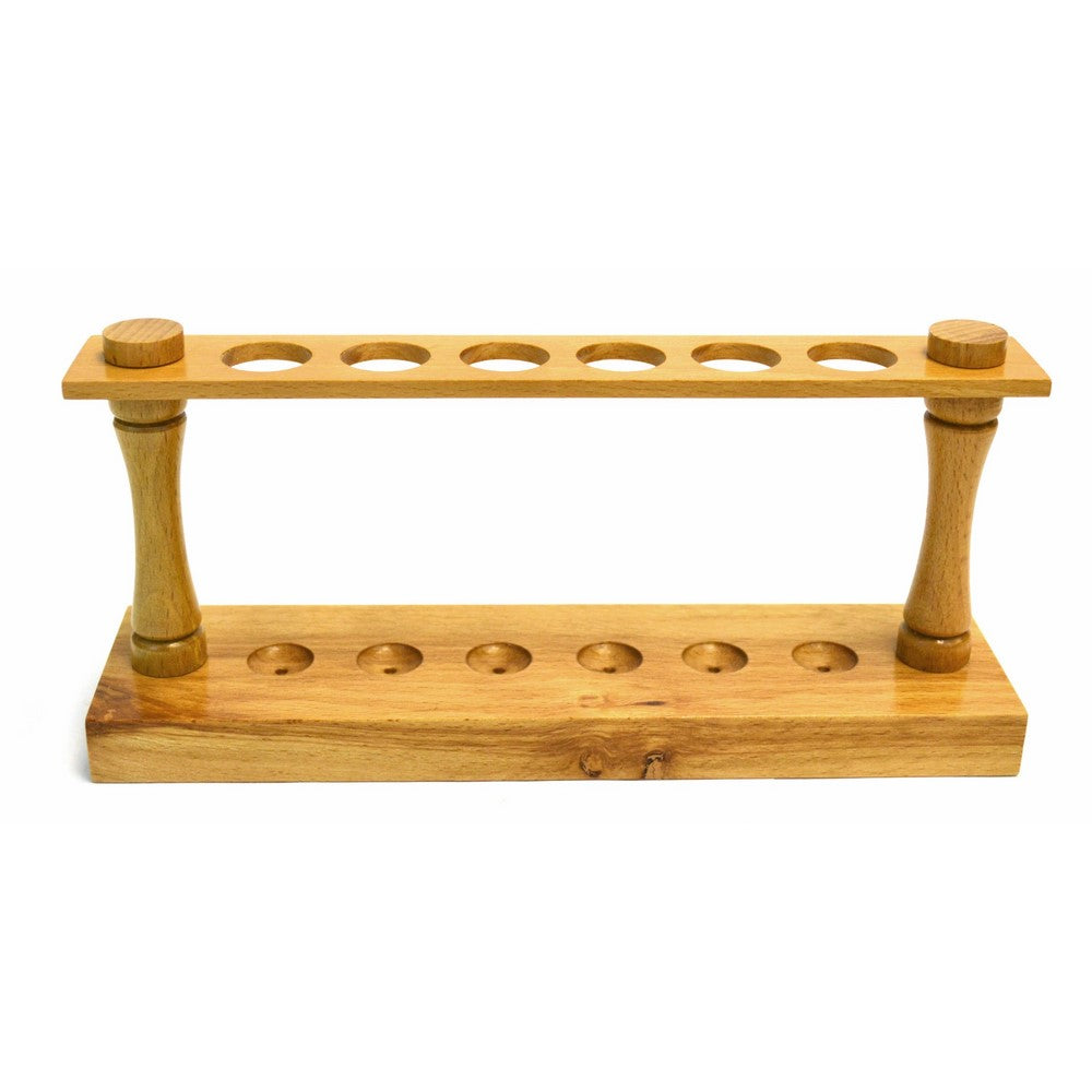 This is a high quality wooden test tube rack that has (6) 22mm holes. Can be used for test tubes or for non-traditional purposes like a pen holder, family tooth brush holder, or even hold your razor(s).