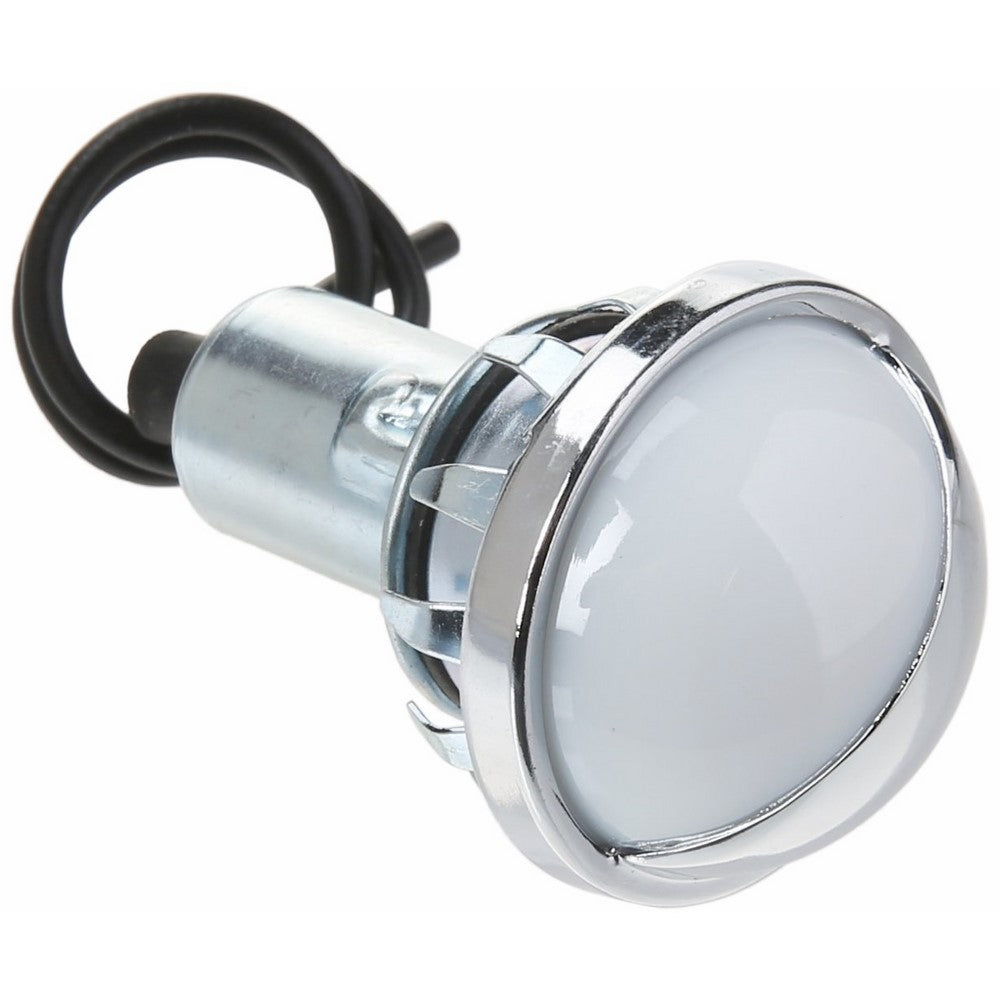 Price For: Each Volt Bulb: 12 Sub-Category: Interior Lighting Includes: Translucent White Plastic Lens with Chrome Shade Type: Compact Item: Courtesy Lamp Current Rating: 0.59A Depth: 2-3/8" Color: Clear Termination Type: Hardwired Shape: Round Lamp Type: Incandescent Diameter: 1-1/2" Material: Steel Country of Origin (subject to change): Taiwan