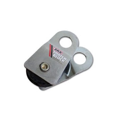 ARB snatch blocks feature side plates that sit snug against the pulley, eliminating the possibility of the winch cable becoming trapped between the pulley and the side plates. The groove on the pulley itself tapers down to the center allowing for a variety of cable sizes (1/4 inch - 1/2 inch) to be used and ensures the cable is seated securely in the pulley, minimizing lateral movement. To ensure smooth pulley operation, the hardened steel pin is fitted with a nipple, to which grease can be periodically applied.