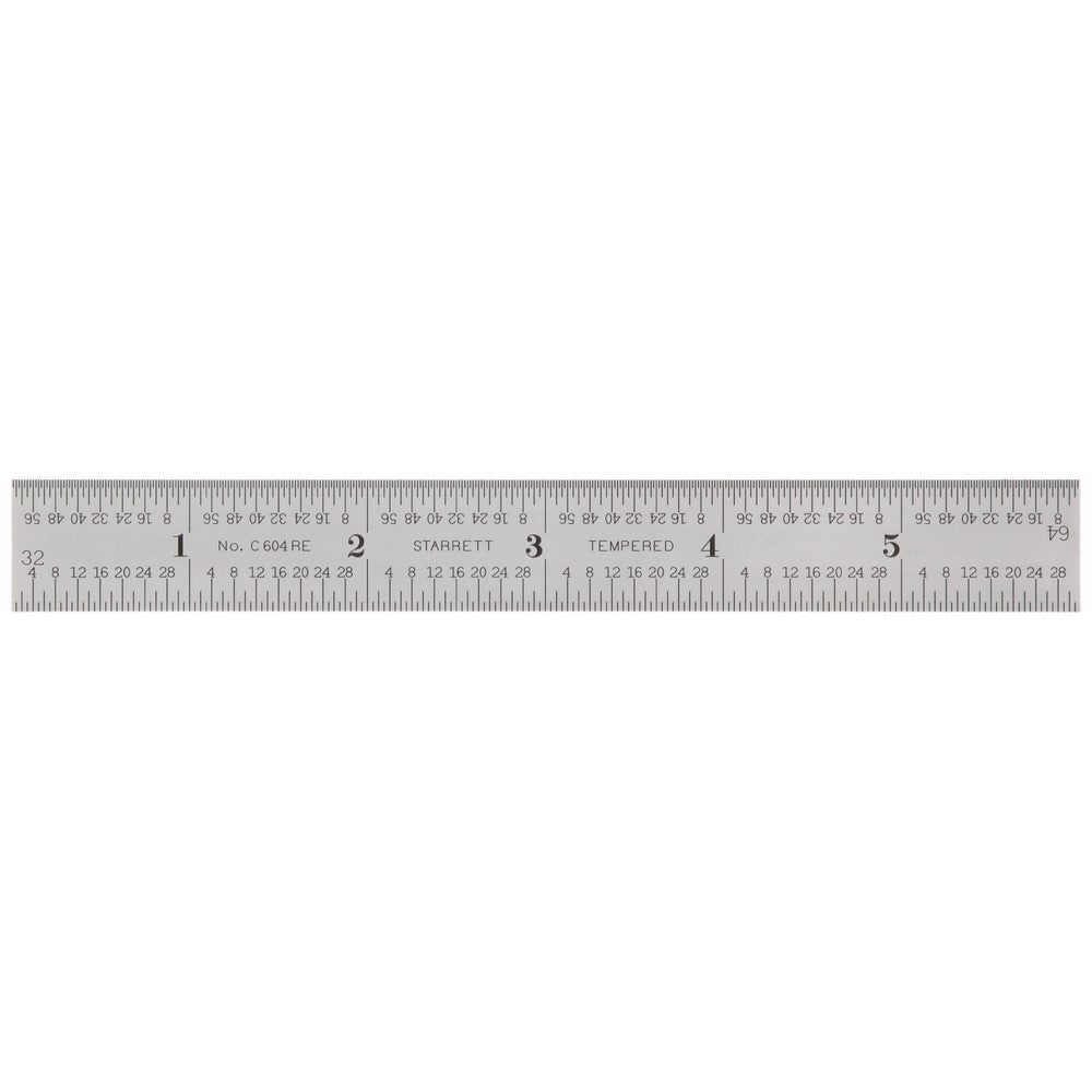 Measurement Graduations: 1/8 inches, 1/16 inches, 1/32 inches, 1/64 inchesSpring-TemperedSatin Chrome FinishEnd Graduations in 32nds; Both Ends, One Side8ths and 16thsQuick-Reading 32nds and 64thsWe tested the accuracy of this rule with a precision caliper. The display read 6.000" on the dot. Now that's Starrett accuracy! Features 1/32" graduations on the...