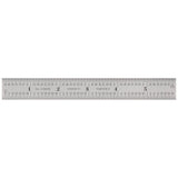 • We tested the accuracy of this rule with a precision caliper. The display read 6.000" on the dot. Now that's Starrett accuracy! Features 1/32" graduations on the short end of the rule, making it perfect for setting bit and blade heights. Compact size means it will always be handy in an apron pocket. The first two long edges are graduated in 8ths and 16ths, while the edges on the flip-side are graduated in 32nds and 64ths. Finely-etched black lines on a satin steel background make for easy reading and minimal glare. Rigid tempered steel won't bend out of shape. End graduations go up to 1/2".
