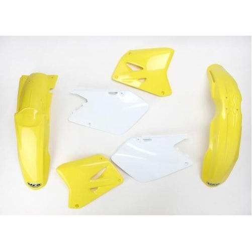 Brand UFO Model SUKIT402-999 Color Yellow Replace all your plastic at onceOEM matches stock bike colors; all Black and all white also AvailableKits include front and rear fender, radiator cover, side panels and front Number plate (except Husqvarna)Re kits Available for Kawasaki KX85 01-12 with big-bike- fenders and for Yamaha...