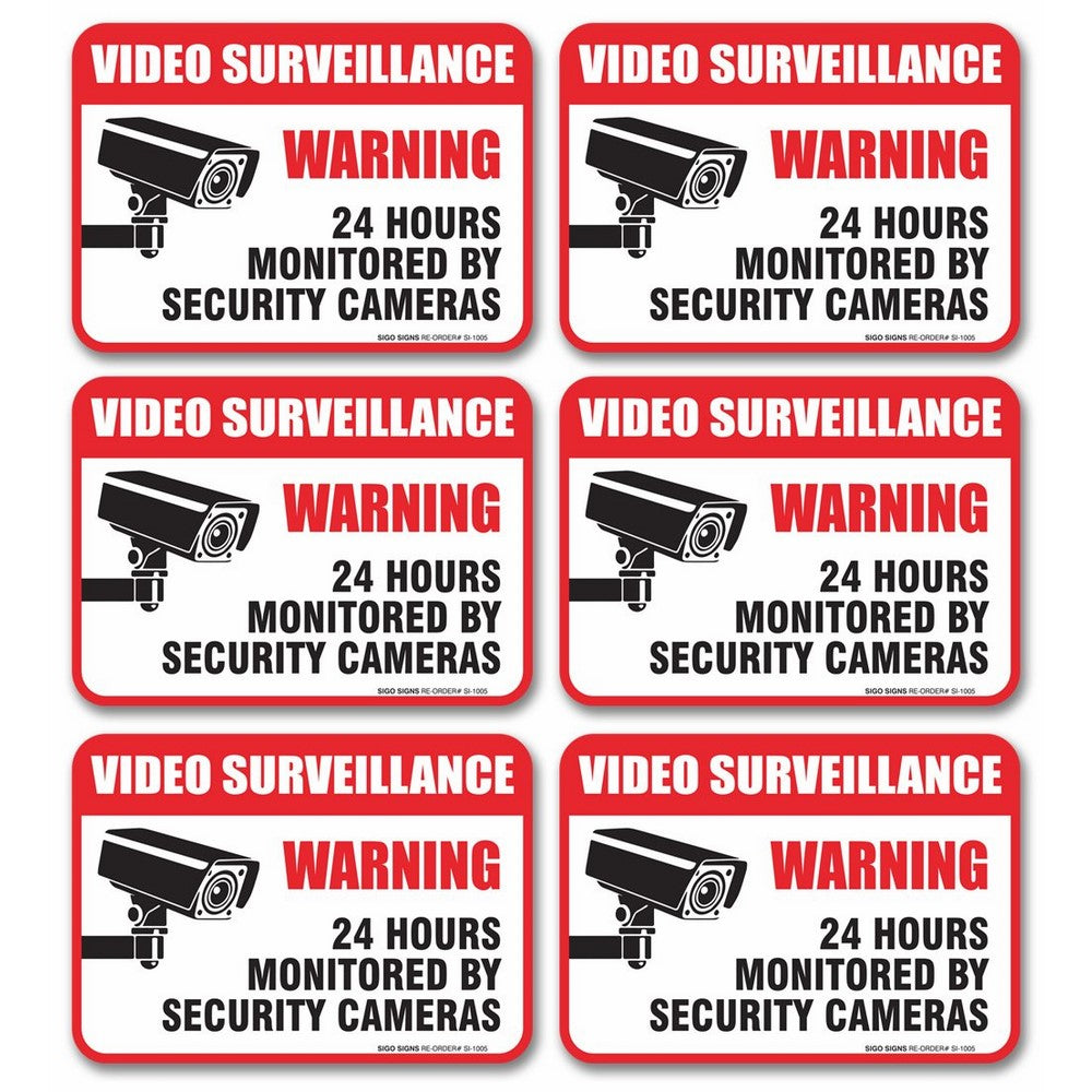 VISIBLE WARNING: Our vibrant Red Black on White Warning Video Surveillance sign/decal is sure to catch the attention of undesirables in your area. PREMIUM QUALITY VINYL: We've crafted our sign using premium, self-adhesive vinyl that won't warp, crack or tear due to weather. MADE IN THE USA: We at Sigo Signs believe in American-made products, which is why our signs are crafted right here in the USA. EASY TO INSTALL: Great for indoor or outdoor use, simply clean the surface you're placing it on, peel off the back, and stick it where it will be seen. UV PRINTED-That means that the graphics and wordings will withstand the elements and will not fade. Long-term lasting