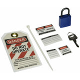 1 - Compact Safety Padlock1 - Heavy-duty Polyester (B-837) Lockout Tag with durable over-laminate that can be re-usable1 - Nylon Cable TieBlue Compact Lock Personal Kit.Brand: Brady, Model: 123146, Color: Blue