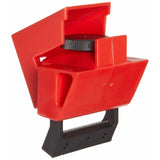 • Brady 65966 480/600V clamp-on breaker lockouts for use on single-pole and internal trip multi-pole breakers. Clamp-on breaker lockouts are easy to install using patented thumbscrew design - no screwdrivers needed! Simply tighten lockout securely onto switch tongue, pull cover over thumbscrew and lock cover to prevent clamp from being loosened. Cleats are included for use with breakers with long, sliding switch throws. Color is red, material is rugged polypropylene and impact modified nylon.
