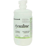 Honeywell Personal 16 oz. (473 ml) Sterile Saline Eye Wash Bottles with Extended Flow Nozzle offer a secondary eye wash solution while en route to a primary eye wash station. The extended-flow nozzle provides a longer flow than conventional 16 oz. containers. The buffered, sterile saline eye wash solution is superior to tap water, which may contain bacteria or contaminants. The blow-fill-seal bottles feature tamper-resistant caps to ensure the quality and safety of the eye wash solution, but the caps are easily removed in an emergency. English, Spanish & French instructions.