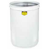 Justrite Cease-Fire parts-drums only. Cease-Fire drum bodies are heavy gauge steel with a rust preventative interior coating. Capacity: 12 gallon. White color. Measures 14-1/2-inches outer diameter by 20-1/4-inches height.