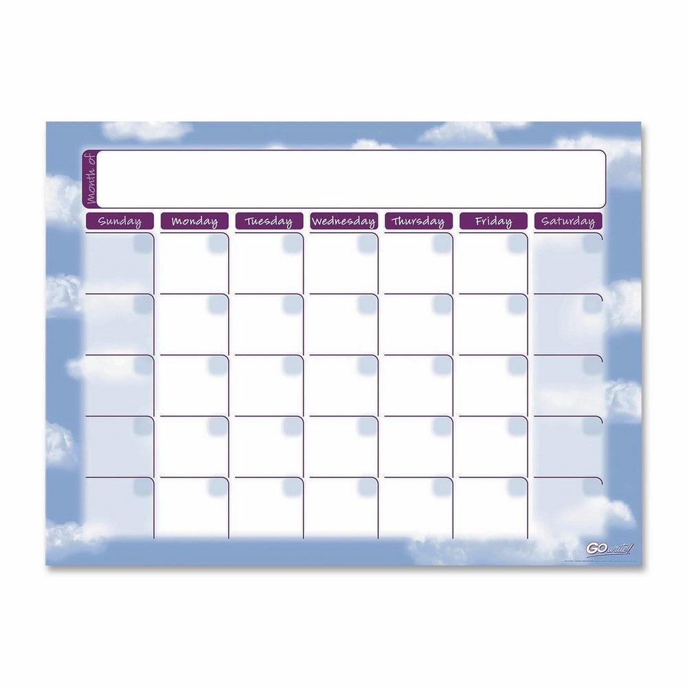 GoWrite! Dry Erase Monthly Calendars can be used over and over again. Each pack contains three white calendars with a cloud pattern, and measure 16.5 inches by 22 inches. Use all three calendars together to display three months at a time. The adhesive backing makes it easy to adhere this calendar to almost any hard, smooth, clean, non-porous surface. It won't leave residue behind, and erases cleanly. Works great in classrooms, at home or in the office. GoWrite! Dry Erase products allow you to let your imagination shine!