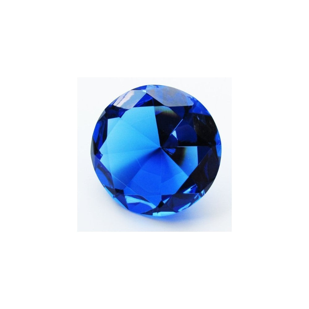 This giant 100 mm eye-catching cut glass cobalt blue gem is sure to make an impression. Measuring 3 3/4" x 2" deep, this big Cobalt Blue Diamond Crystal Jewel is a hefty 1 lb and would be perfect used as a decorative addition to place settings, a paperweight, a unique party favor, or as a token of immense affection for that person who'd love to get a "giant rock." The sparkling facets of this 100mm cut glass gem catch the light and sparkle, making it a beautiful addition to your table, desk, shelves, or windowsill. Ships brand new to you with our 100% customer service guarantee.