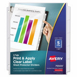 Printshop Quality, Durable and Easy Need custom dividers in a hurry Avery Index Maker Clear Label Dividers make it easy to create professional-looking documents from your desktop. Simply print labels, align them against tabs, smooth down labels and peel the strip. The Easy Apply label strips help you apply multiple labels in seconds. And with free templates from avery.com, you can use your inkjet or laser printer to produce printshop-quality, customized tab labels with sharp text. Just print, peel and press. That's all it takes to organize presentations, reports or reference materials. Available in a variety of different colors.