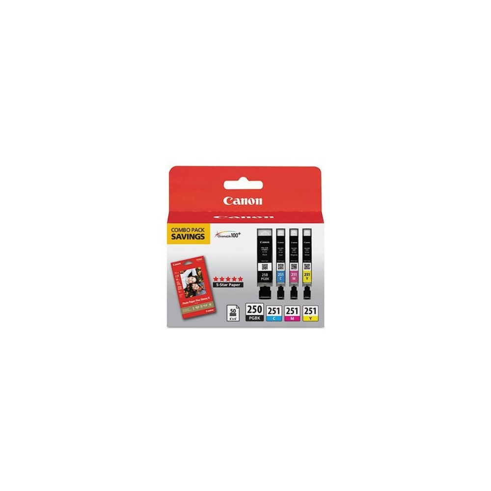 Canon - 6497B004 Inks amp; Paper Pack,PGI-250 BK,CLI-251,4 Inks amp; 50 Sheets 4x6 Paper, CMYK