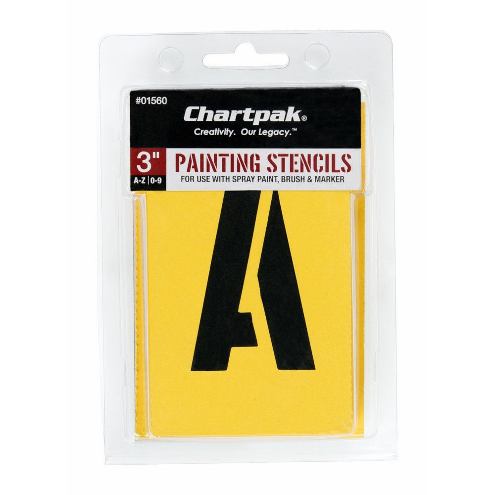 Use Chartpak Letter and Number Painting Stencils to customize signs, posters, displays, identification and other projects. Use with pens, pencils, markers and paint. These reusable stencils are made from heavy board and include pricing symbols, punctuation and extra letters. Gothic font. A - Z and 0 - 9, 3 inches H, 35 per pack. Chartpak prides itself on integrating brands that affect the way we work, the way we learn, and the way we create.